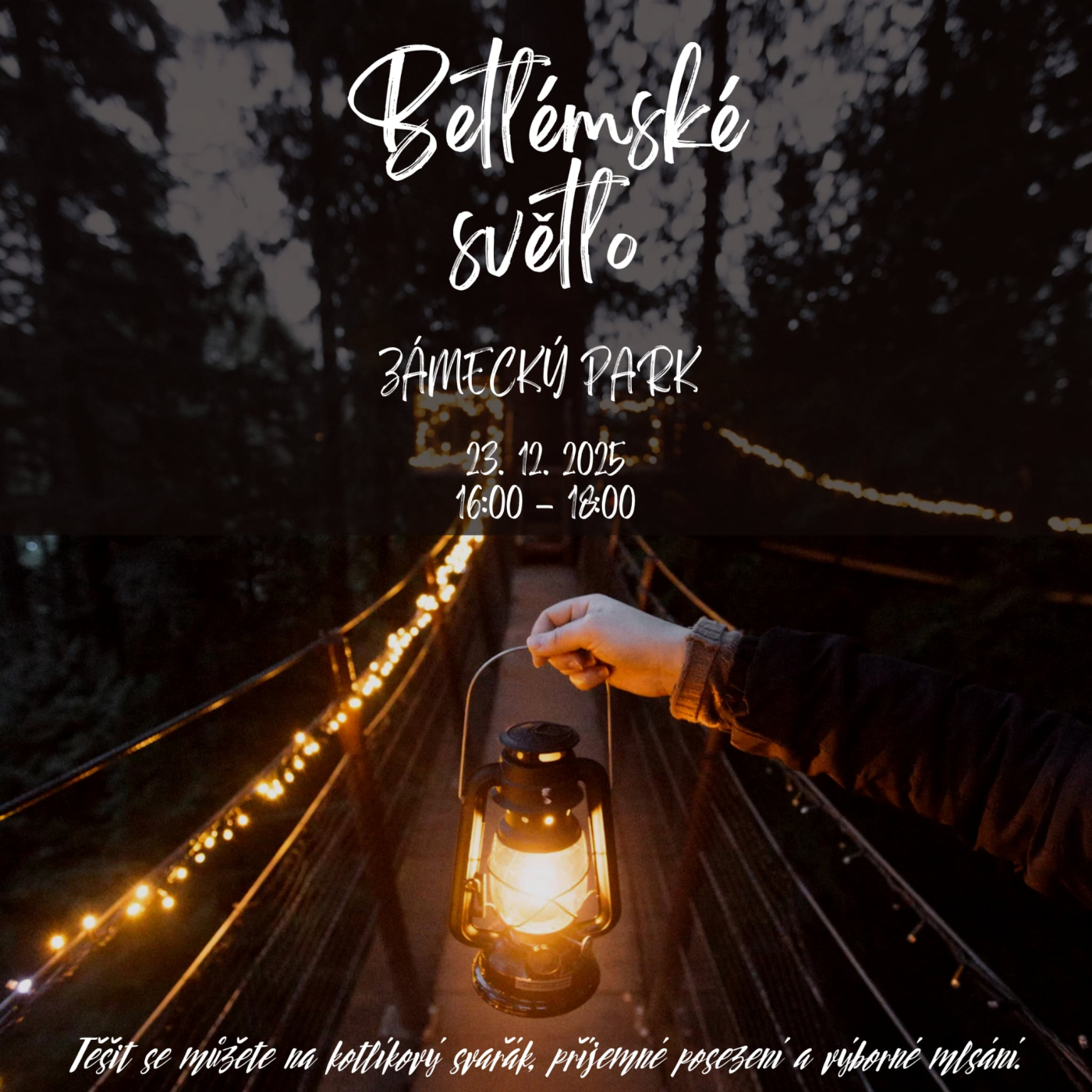 V zámeckém parku u skautské klubovny bude jako vždy tradiční předávání Betlémského světla. Na místě bude kotlíkový svařák, čaj, výborné mlsání a posezení - to vše v krásné a neopakovatelné předvánoční atmosféře. Všichni jste zváni a my se na vás moc těšíme! Moravskokrumlovští skauti.